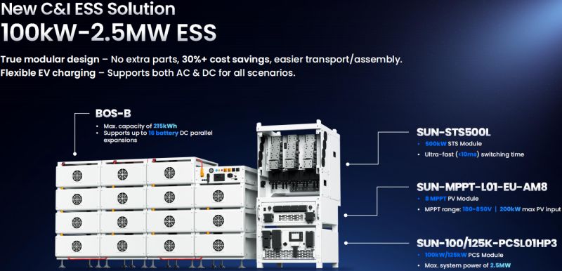 - Scalability: Designed for parallel operation, allowing systems to scale from 100kW up to 2.5MW by connecting multiple units.